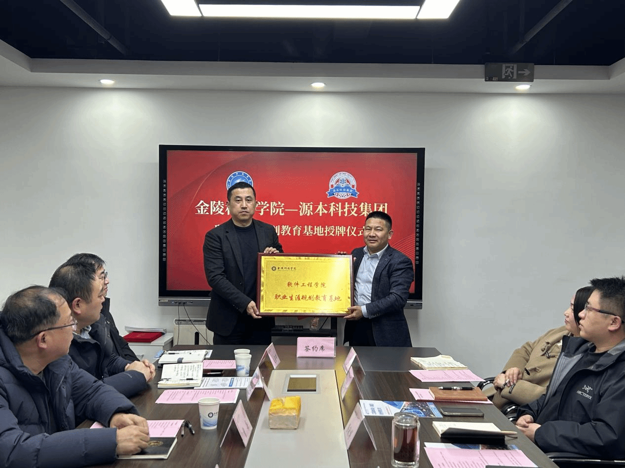 調(diào)研團隊首先抵達南師大玄武科技園的源本科技總部,在企業(yè)相關(guān)負責人引導(dǎo)下參觀了企業(yè)文化墻、校企合作展示區(qū)等場所。隨后開展交流會,會上雙方負責人依次介紹出席人員、致詞并介紹企業(yè)與學院情況,雙方圍繞人才供需對接、校企深度合作模式、現(xiàn)有合作回顧與深化及其他潛在合作環(huán)節(jié)等議題展開深入交流,達成多項共識并,并舉行了“職業(yè)生涯規(guī)劃教育基地”、“就業(yè)和社會實踐基地”授牌儀式。