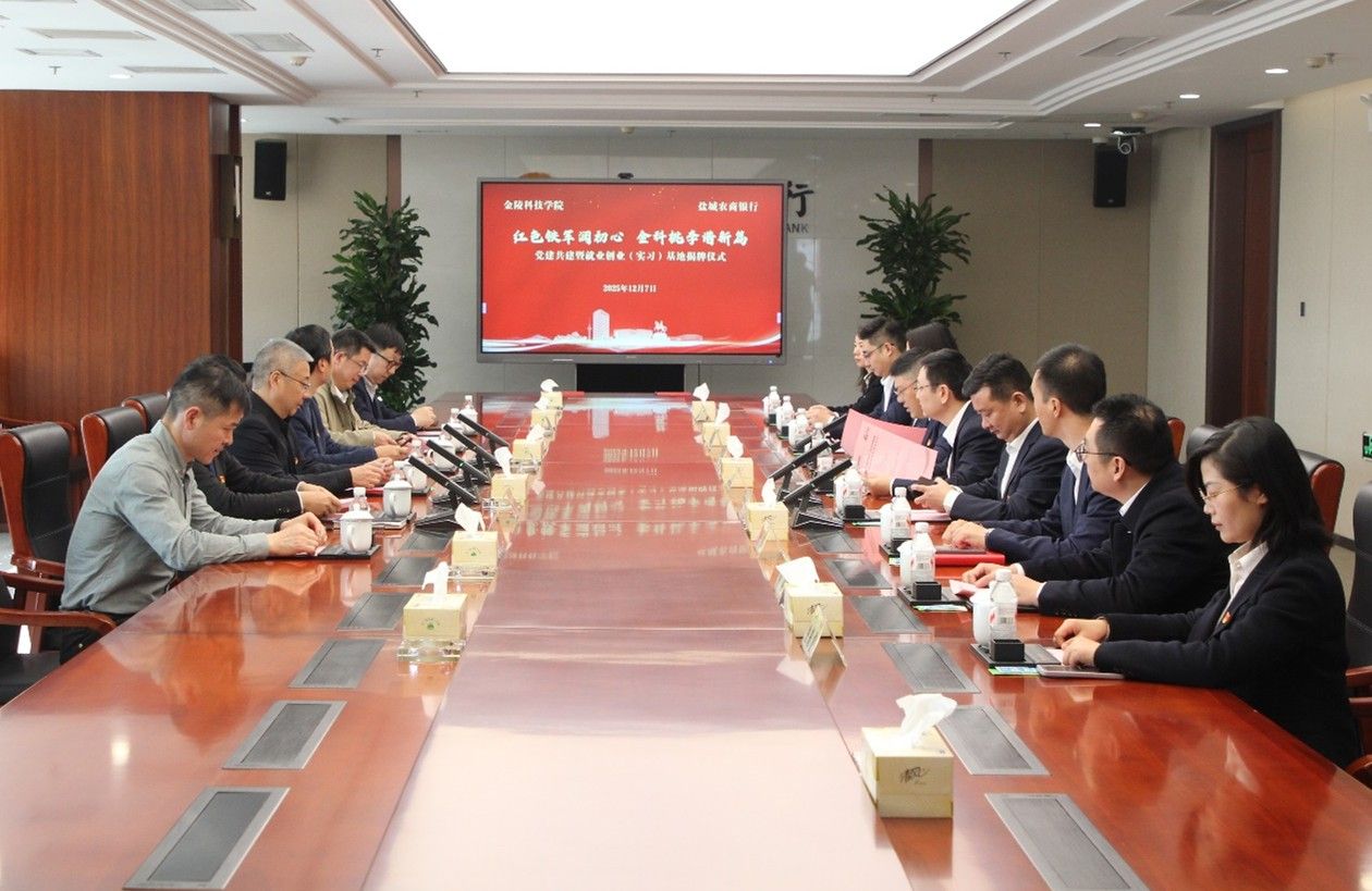 為深入學(xué)習(xí)貫徹黨的二十大及二十屆三中、四中全會(huì)精神,持續(xù)強(qiáng)化黨建引領(lǐng)作用,推動(dòng)黨建工作與業(yè)務(wù)發(fā)展深度融合,12月7日下午,軟件學(xué)院赴鹽城農(nóng)商銀行開(kāi)展黨建共建活動(dòng),并舉行就業(yè)創(chuàng)業(yè)(實(shí)習(xí))基地揭牌儀式。鹽城農(nóng)商銀行黨委書(shū)記、董事長(zhǎng)許闖,黨委副書(shū)記、行長(zhǎng)徐鍵,黨委委員、副行長(zhǎng)沈光彩;校黨委常委、副校長(zhǎng)高永祥,校長(zhǎng)辦公室主任、校友辦主任龐海燕,軟件學(xué)院黨委書(shū)記戴軍,黨委副書(shū)記徐斌,以及雙方單位相關(guān)負(fù)責(zé)同志共同參加活動(dòng)。