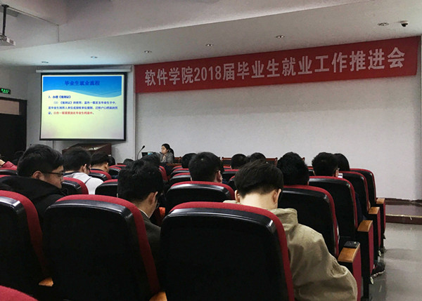 為推進(jìn)2018屆畢業(yè)生就業(yè)工作,幫助畢業(yè)生更好地把握就業(yè)節(jié)奏。3月13日下午,軟件工程學(xué)院在大學(xué)生活動(dòng)中心報(bào)告廳舉辦2018屆畢業(yè)生就業(yè)工作推進(jìn)會(huì)。參加會(huì)議的有畢業(yè)班輔導(dǎo)員、班主任和2018屆全體畢業(yè)生,會(huì)議由軟件學(xué)院就業(yè)干事邵彥婷主持。