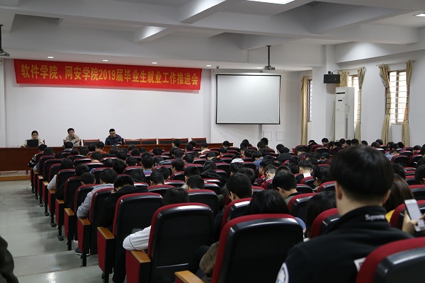為推進(jìn)2019屆畢業(yè)生就業(yè)工作,幫助畢業(yè)生順利畢業(yè)、及時(shí)就業(yè),2019年3月22日下午,軟件工程學(xué)院、網(wǎng)絡(luò)安全學(xué)院在大學(xué)生活動(dòng)中心116報(bào)告廳舉辦2019屆畢業(yè)生就業(yè)工作推進(jìn)會(huì)。院黨委副書記徐斌、畢業(yè)班輔導(dǎo)員、班主任及2019屆全體畢業(yè)生參加會(huì)議,會(huì)議由學(xué)院就業(yè)干事邵彥婷主持。
