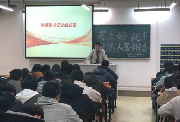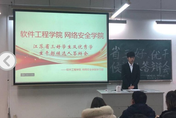 3月22日晚,軟件工程學(xué)院、網(wǎng)絡(luò)安全學(xué)院在1206教室召開了2019年度省級(jí)三好學(xué)生、優(yōu)秀學(xué)生干部評(píng)審會(huì)。院黨委副書記徐斌,學(xué)工辦副主任李勇,各年級(jí)輔導(dǎo)員出席此次會(huì)議。團(tuán)總支學(xué)聯(lián)主要學(xué)生干部、各年級(jí)班委作為大眾評(píng)審參與了本次會(huì)議。