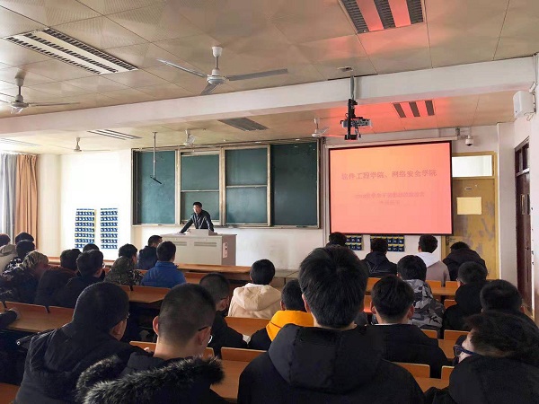 3月20日上午,軟件工程學(xué)院、網(wǎng)絡(luò)安全學(xué)院在教學(xué)樓1232教室舉辦2018級(jí)學(xué)生干部思想政治專題教育活動(dòng),院黨委副書(shū)記徐斌做主題報(bào)告,100余名2018級(jí)學(xué)生干部參加。