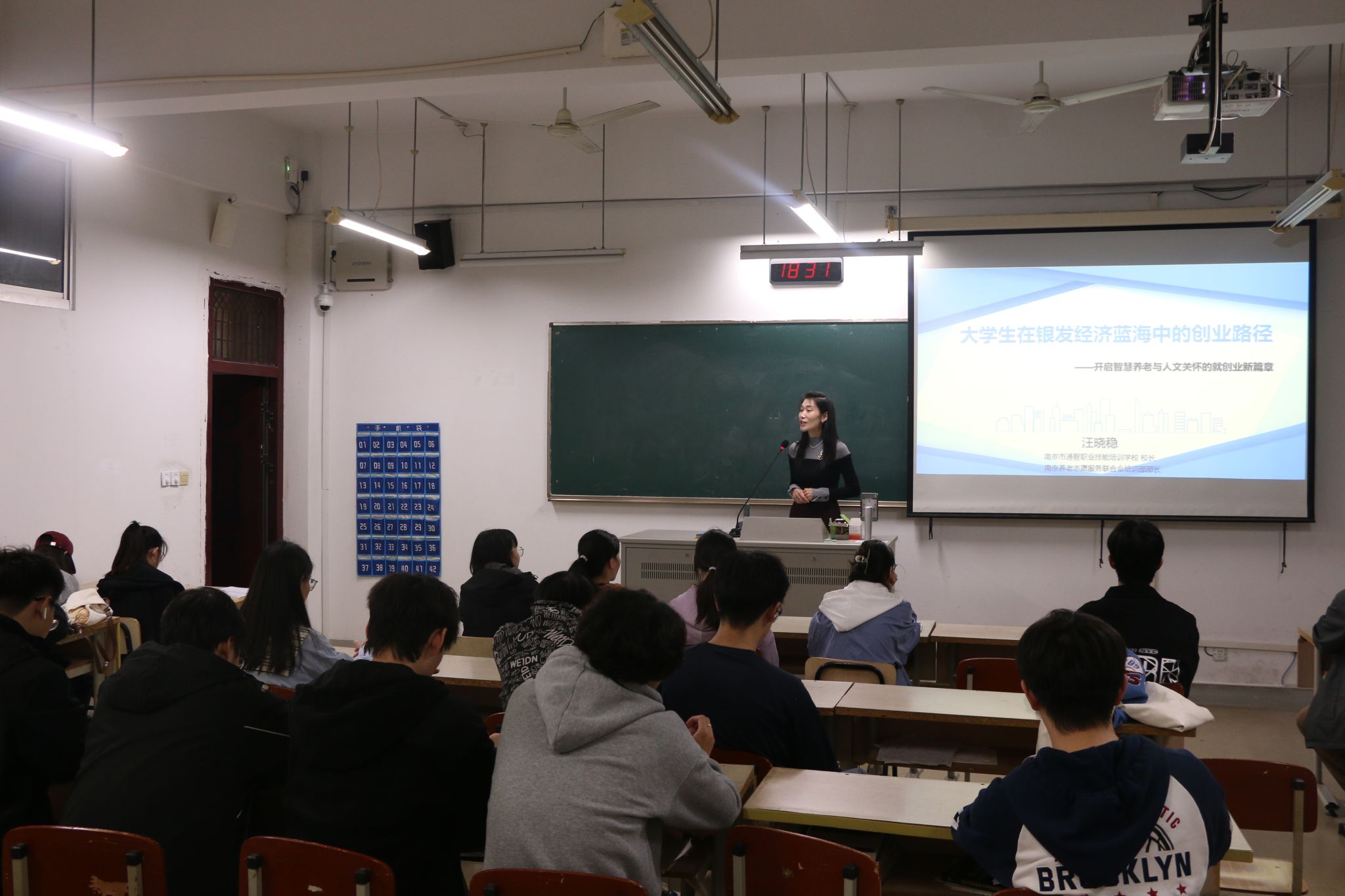 2024年11月13日晚18:30至19:30,軟件工程學院在1號教學樓1503室成功舉辦了一場大學生創(chuàng)業(yè)講座。本次講座旨在探討大學生在銀發(fā)經濟藍海中的創(chuàng)業(yè)路徑,并開啟智慧養(yǎng)老與人文關懷的創(chuàng)業(yè)新篇章。本次講座的主講嘉賓為南京市通智職業(yè)技能培訓學校的校長、南京養(yǎng)老志愿服務聯合會培訓部部長汪曉穩(wěn)。