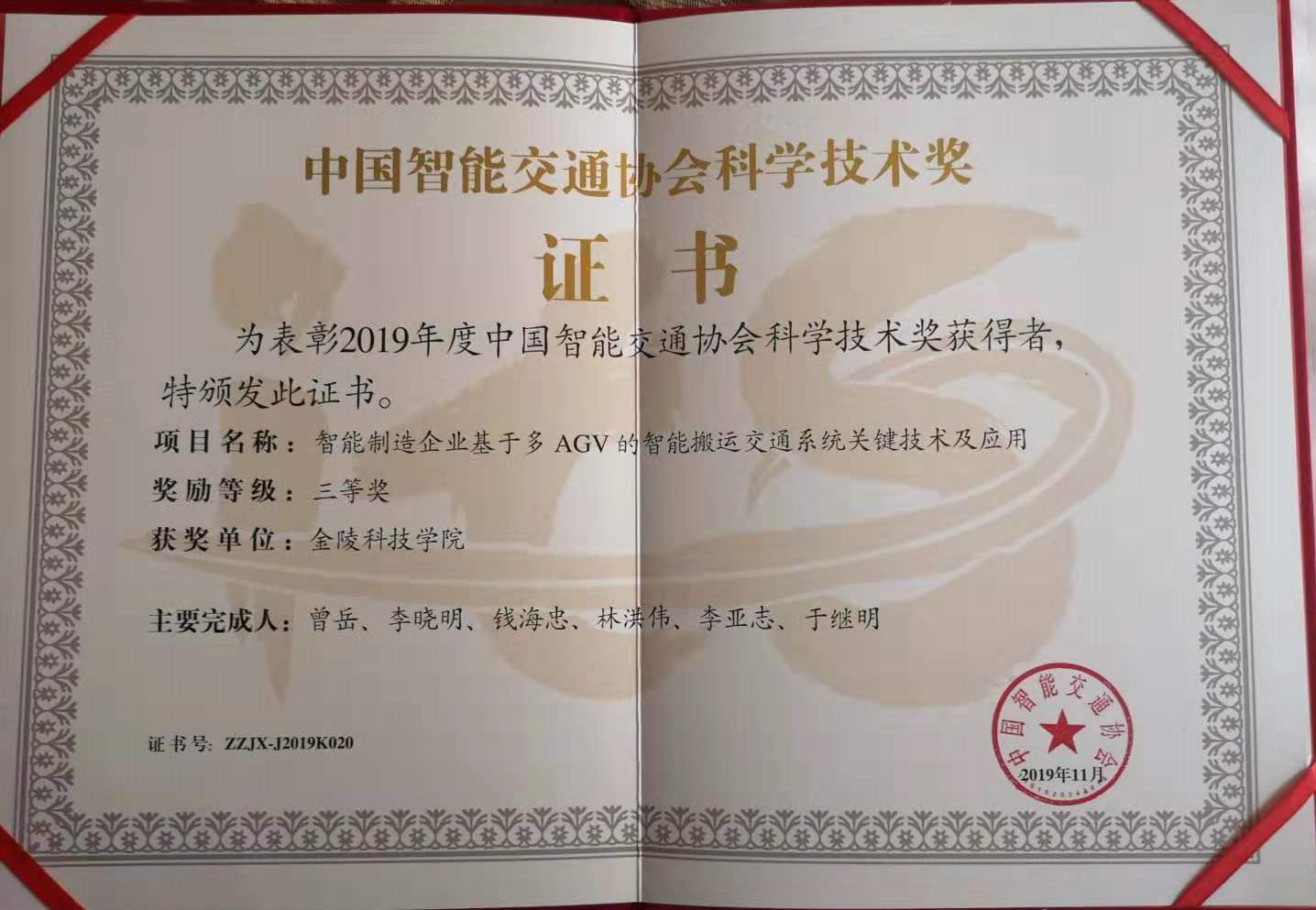 2019年度中國智能交通協(xié)會科學(xué)技術(shù)獎(jiǎng)?lì)C獎(jiǎng)儀式在青島銀沙灘溫德姆至尊酒店舉辦。我校軟件學(xué)院曾岳教授作為第一完成人,及其團(tuán)隊(duì)共同完成的“智能制造企業(yè)基于多AGV的智能搬運(yùn)交通系統(tǒng)關(guān)鍵技術(shù)及應(yīng)用”獲評三等獎(jiǎng)。