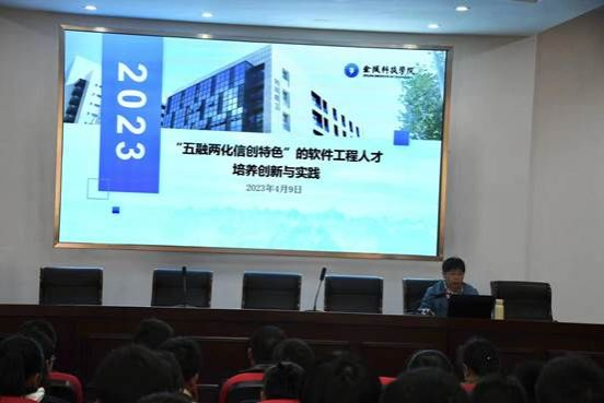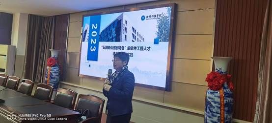 簽約儀式結(jié)束后,張燕副校長給三所學(xué)校高三年級(jí)和高二年級(jí)學(xué)生作以《2023“五融兩化信創(chuàng)特色”的軟件工程人才培養(yǎng)創(chuàng)新與實(shí)踐》為主題的報(bào)告。鼓勵(lì)同學(xué)們努力學(xué)習(xí),歡迎報(bào)考金陵科技學(xué)院軟件工程專業(yè),為我國信創(chuàng)產(chǎn)業(yè)發(fā)展提供新活力。