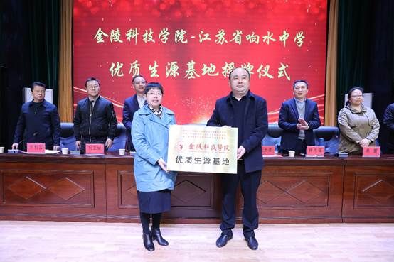 張燕副校長和三所學(xué)校領(lǐng)導(dǎo)進(jìn)行了友好交流,相互介紹了各自學(xué)校發(fā)展建設(shè)情況,閔琛處長向三所學(xué)校領(lǐng)導(dǎo)介紹了我校招生情況、就業(yè)情況和在校大學(xué)生創(chuàng)新創(chuàng)業(yè)情況。張燕副校長代表學(xué)校與江蘇省響水中學(xué)黨委書記校長張大春 、江蘇省上岡高級(jí)中學(xué)黨委書記校長談萬余在“金陵科技學(xué)院優(yōu)質(zhì)生源基地合作協(xié)議書”上簽字,并舉行了優(yōu)質(zhì)生源基地授牌儀式。