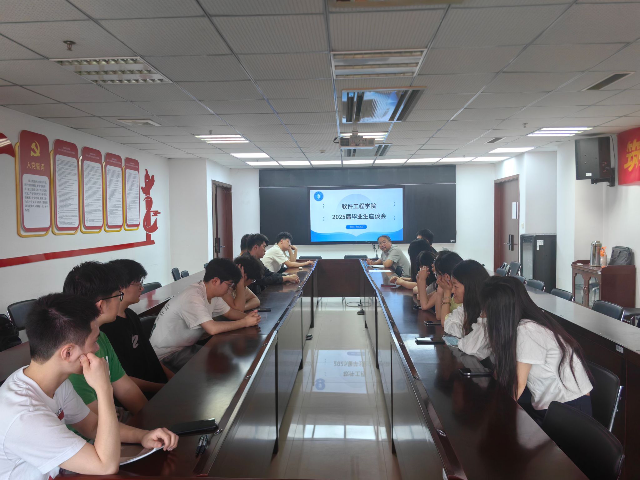 為更好地收集應(yīng)屆畢業(yè)生對學(xué)院學(xué)風(fēng)建設(shè)和教學(xué)服務(wù)等方面的建議,深入了解學(xué)院人才培養(yǎng)目標(biāo)和畢業(yè)要求的達(dá)成情況,5月15日上午10點,學(xué)院在科技樓2號樓423會議室組織召開了2025屆畢業(yè)生代表座談會。軟件工程(基礎(chǔ)軟件)系副主任朱皖寧老師以及各班畢業(yè)生代表參加了本次會議。