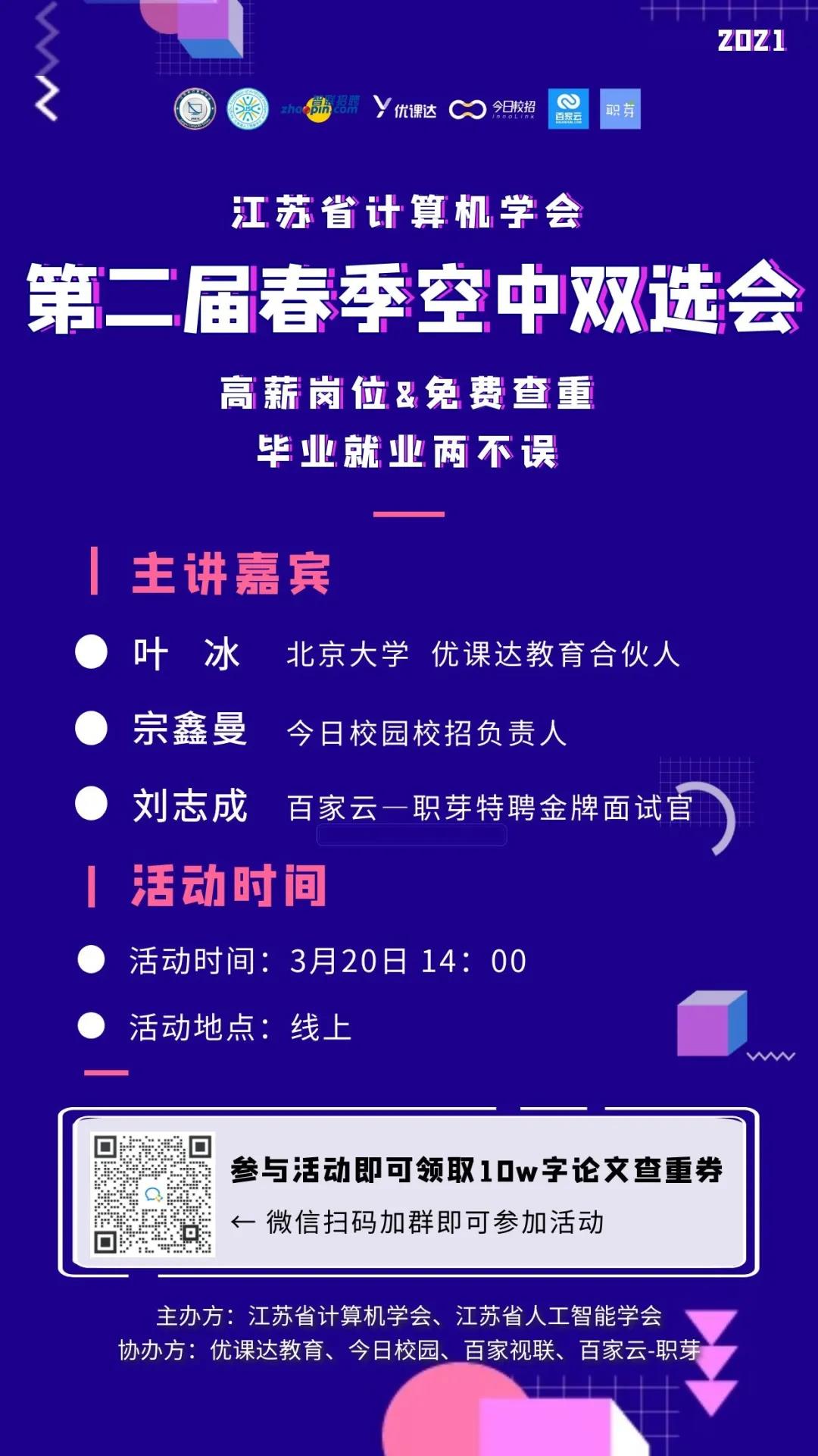 江蘇省計算機學會第二屆春季空中雙選會火熱開始!
