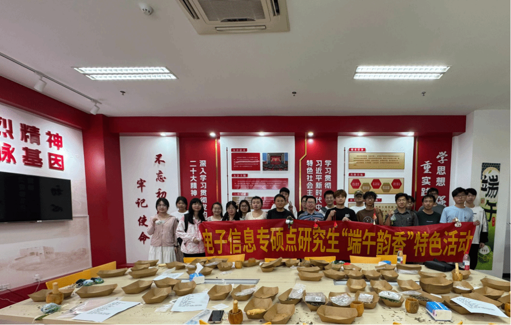 5月22日晚,科技樓雨花廳內(nèi)洋溢著濃郁的節(jié)日氛圍。懸掛的“端午安康”紅色橫幅與菖蒲裝飾相映成趣,20余名電子信息專碩點的研究生齊聚一堂,參與由研究生會主辦的“我們的節(jié)日·端午”香囊制作活動。學院徐斌副書記親臨現(xiàn)場,與同學們共同體驗非遺技藝。