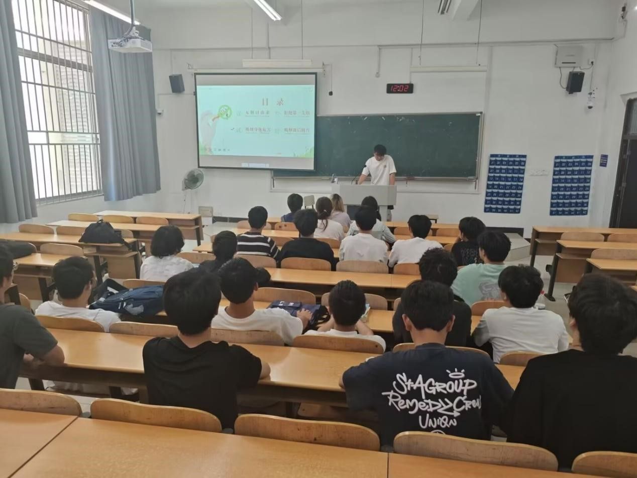 班會上,各班主講人借助多媒體手段,以精心制作的PPT呈現(xiàn)《中國吸煙危害健康報告》關(guān)鍵數(shù)據(jù)。著重指出我國每年超100萬人因煙草相關(guān)疾病死亡,以及二手煙使非吸煙者肺癌風(fēng)險增加20%—30%的嚴峻事實。同時展示吸煙者與非吸煙者肺部對比圖,揭示煙草對呼吸系統(tǒng)的不可逆損害,并結(jié)合電子煙重金屬超標案例,闡明電子煙并非無害,明確煙草和電子煙對心血管等多器官的嚴重危害。這些科學(xué)信息有效破除了部分同學(xué)對吸煙危害的模糊認知,從科學(xué)層面強化了拒煙意識。班會不僅聚焦煙草對個人健康的直接危害,還延伸至次生危害。通過播放煙頭引發(fā)火災(zāi)的新聞視頻,結(jié)合校園實際,分析宿舍等場所吸煙的消防隱患。此外,以情景劇演繹吸煙導(dǎo)致的宿舍矛盾和社交尷尬,讓同學(xué)們體會吸煙對人際關(guān)系和集體環(huán)境的負面影響,引導(dǎo)大家認識到遠離煙草是個人健康選擇,也是維護公共環(huán)境與人際和諧的責(zé)任。