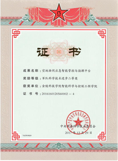 楊忠,空地協(xié)同應(yīng)急智能管控指揮平臺(tái),軍隊(duì)科技進(jìn)步獎(jiǎng),二等獎(jiǎng),2017 年