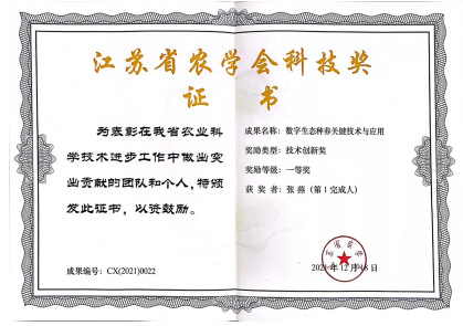 張燕,數(shù)字生態(tài)種養(yǎng)關(guān)鍵技術(shù)及應(yīng)用,江蘇省農(nóng)學(xué)會(huì)科技獎(jiǎng),一等獎(jiǎng),2021